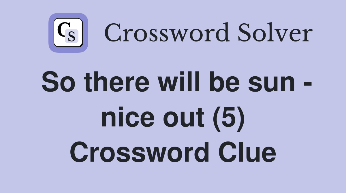 So there will be sun nice out (5) Crossword Clue Answers
