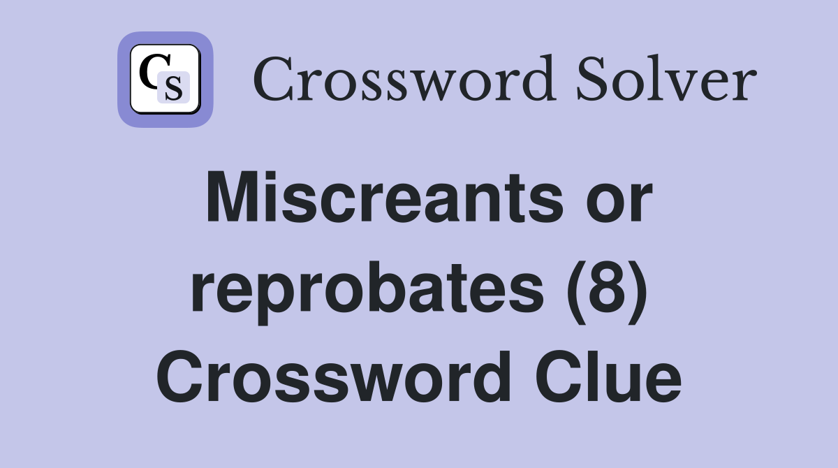 Miscreants or reprobates (8) Crossword Clue Answers Crossword Solver