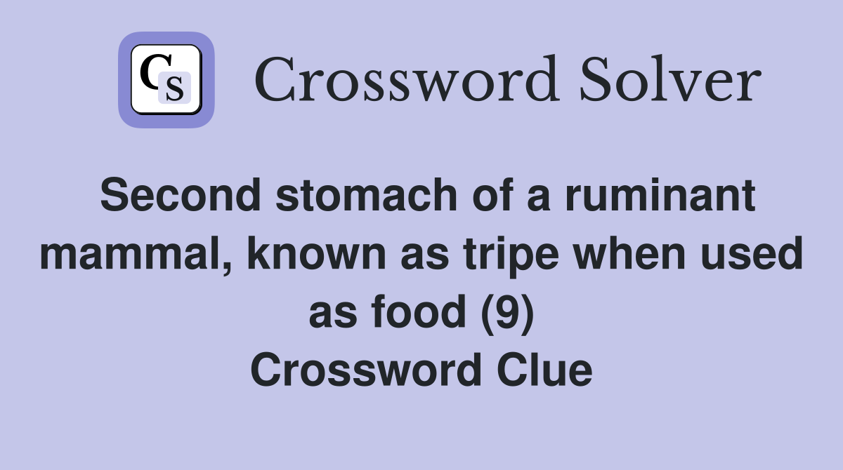 Parts of a ruminant s stomach prepared as food (5) Crossword Clue