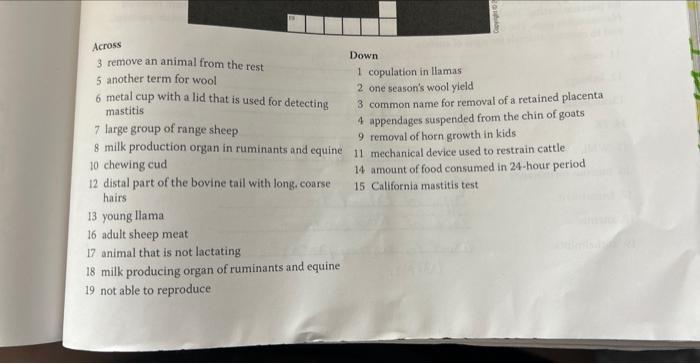Crossword Puzzle Ruminant Terms Supply the correct Chegg com