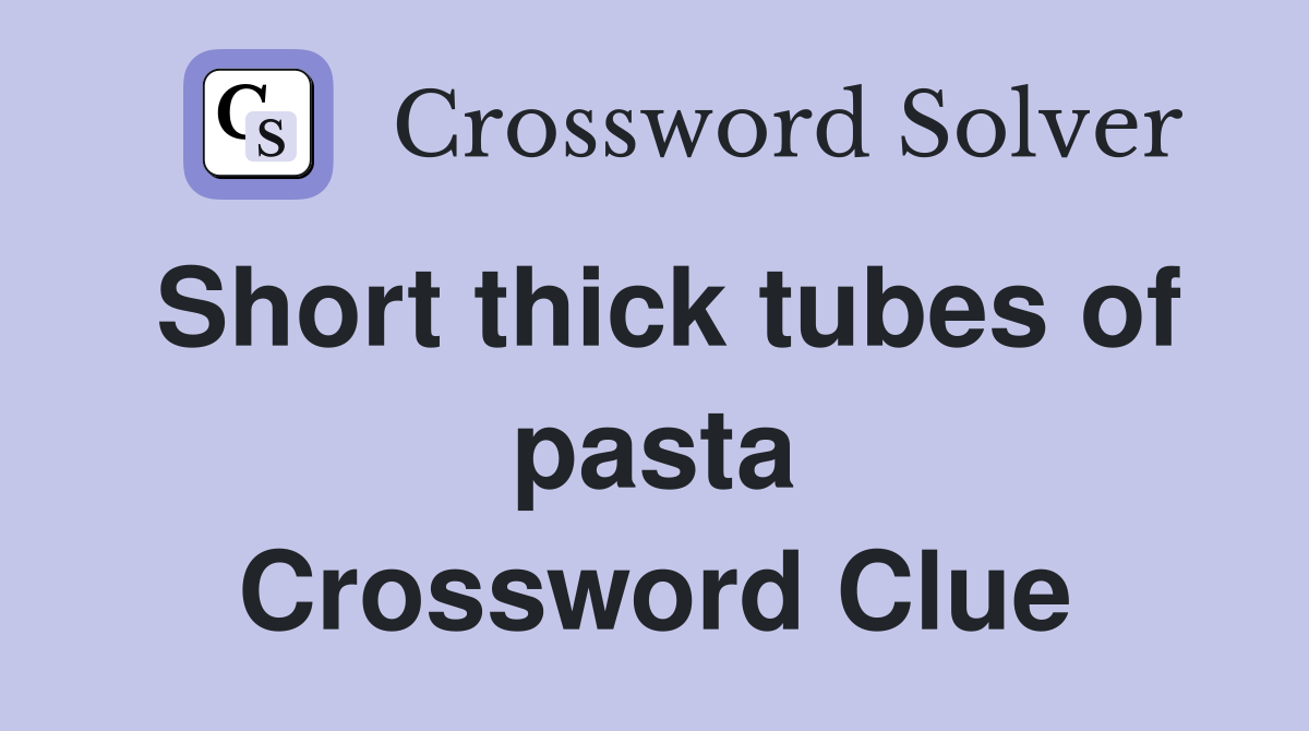 Short thick tubes of pasta Crossword Clue Answers Crossword Solver