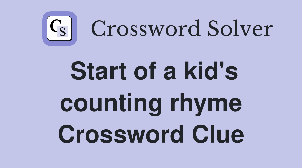 Start of a kid #39 s counting rhyme Crossword Clue Answers Crossword Solver