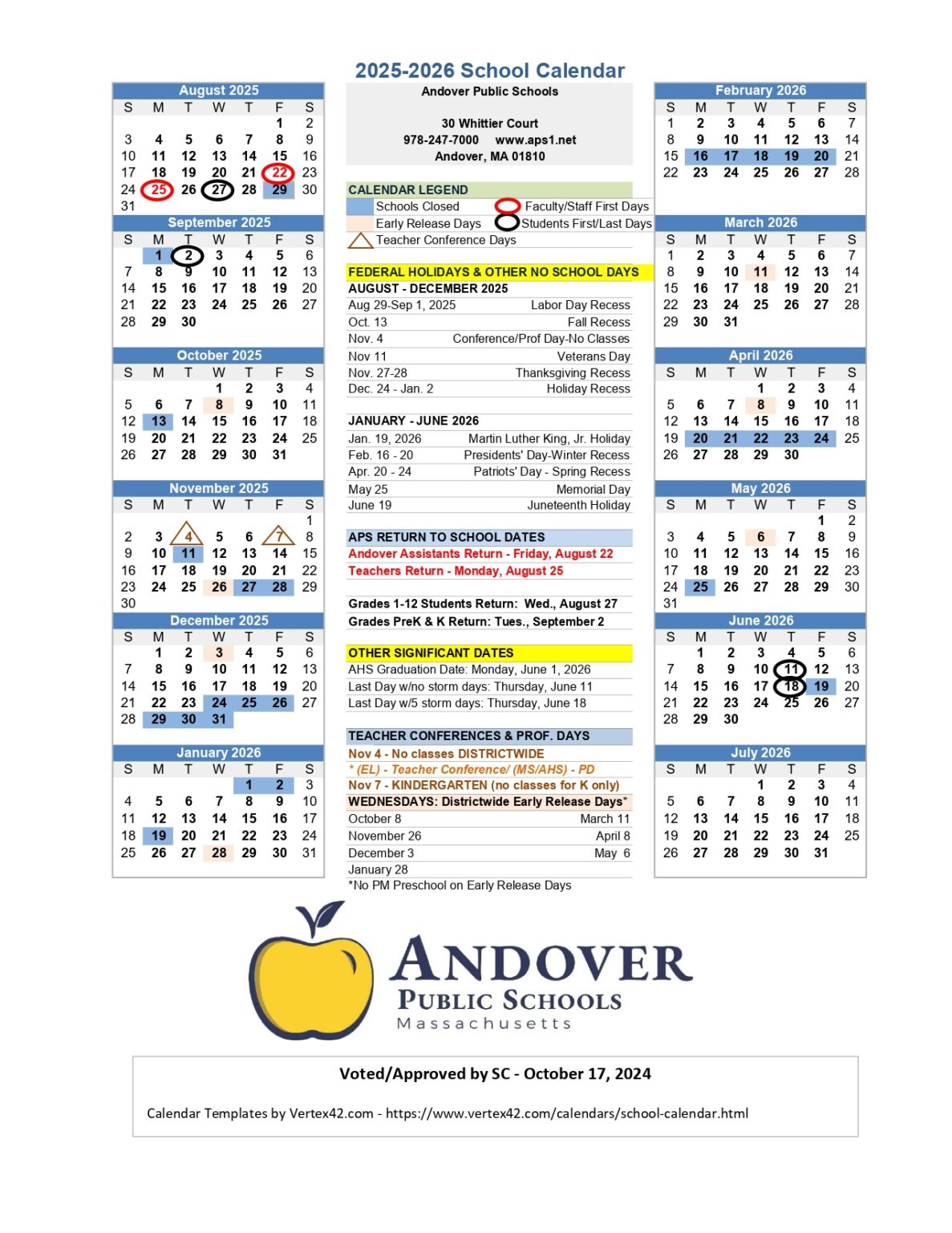 Andover Public Schools 2024 25 School Calendar Andover News