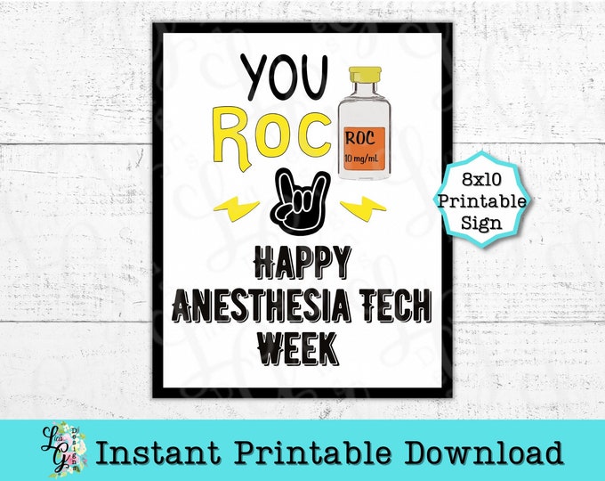 Anesthesia Tech Week Printable Sign Instant Digital Download You Roc
