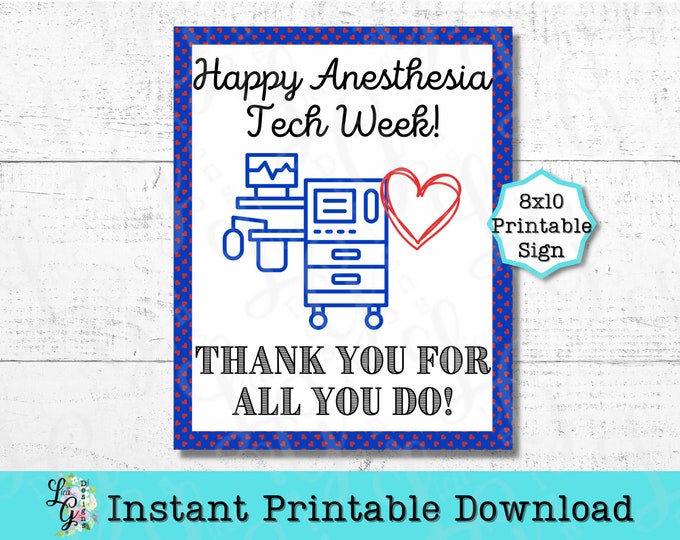Anesthesia Tech Week Printable Sign Instant Digital Download Thank You