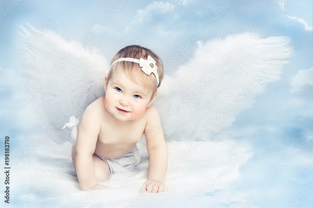 Angel Baby with Wings Crawling on Sky Kid Girl Cupid New Born Child