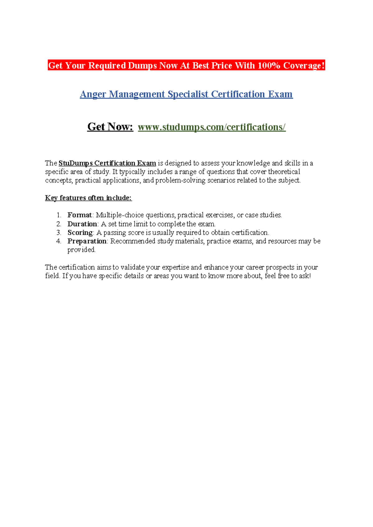 ANGER MANAGEMENT SPECIALIST CERTIFICATION Anger management Anger