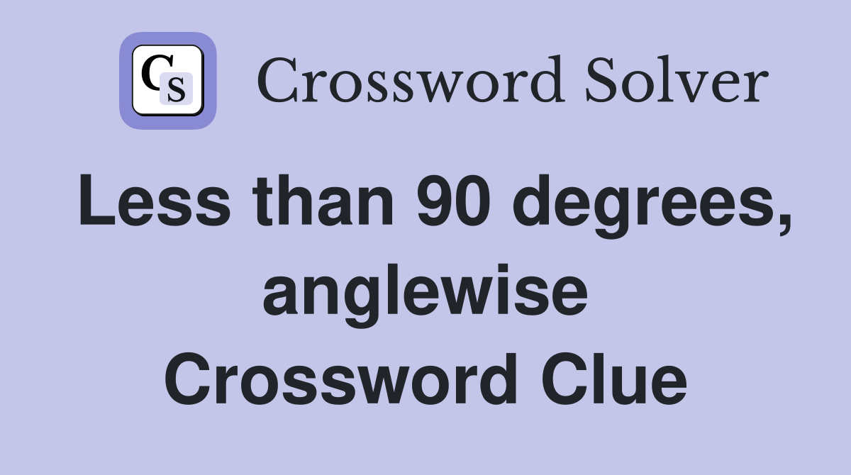 Less than 90 degrees anglewise Crossword Clue Answers Crossword Solver