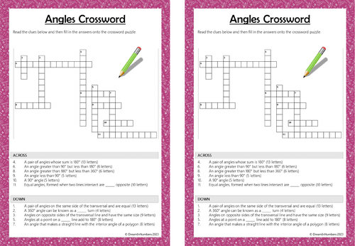 Maths Literacy Puzzle Angles Crossword Teaching Resources
