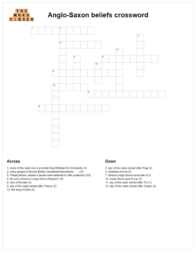 Anglo saxon Crossword WordMint
