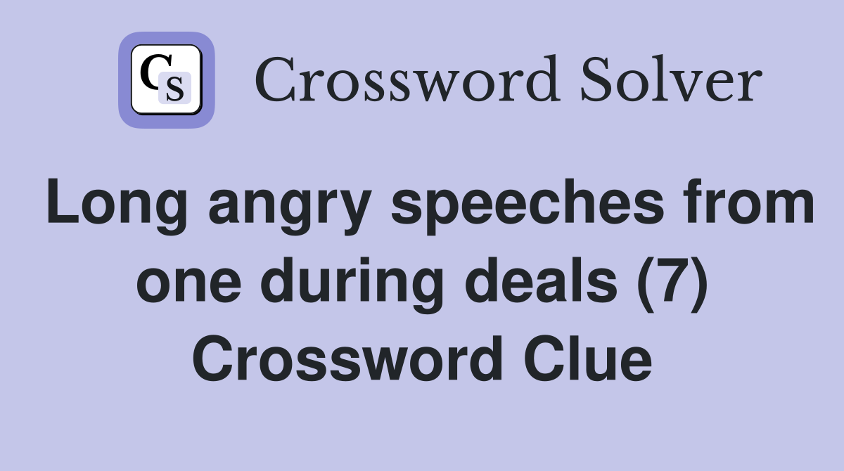 Long angry speeches from one during deals (7) Crossword Clue Answers