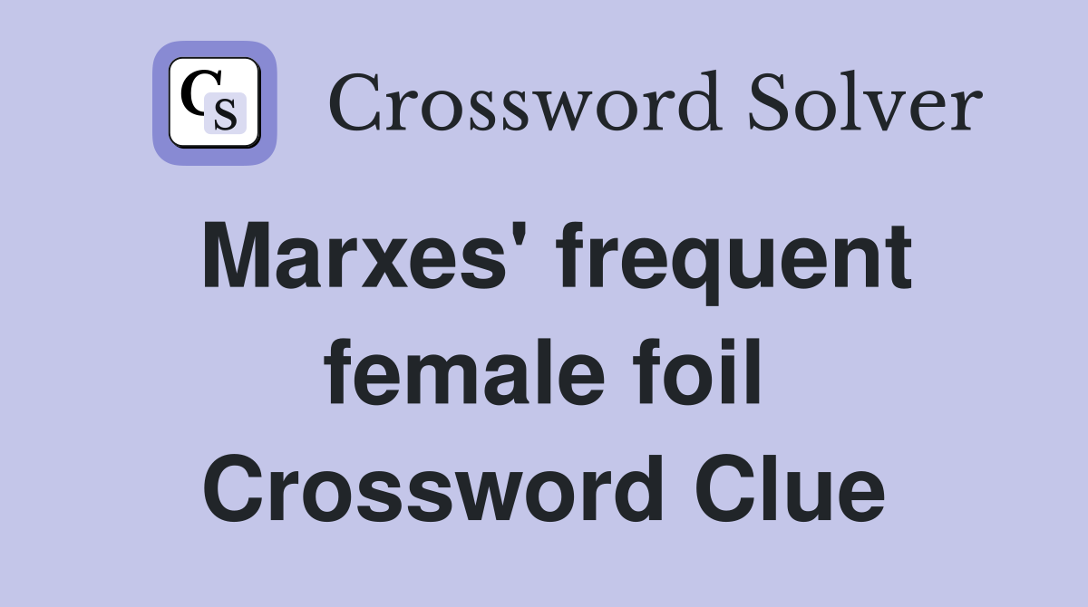 Marxes #39 frequent female foil Crossword Clue Answers Crossword Solver