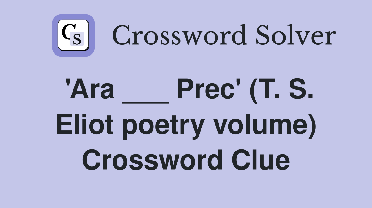 #39 Ara Prec #39 (T S Eliot poetry volume) Crossword Clue Answers