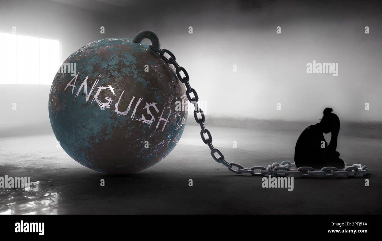 Anguish And Life Pictured As A Word Anguish And A Wreck Ball To
