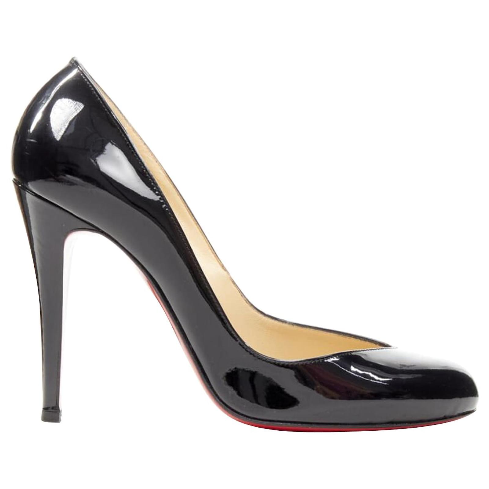 Christian Louboutin Black Patent Almond Toe Angular Vamp Pump Eu38
