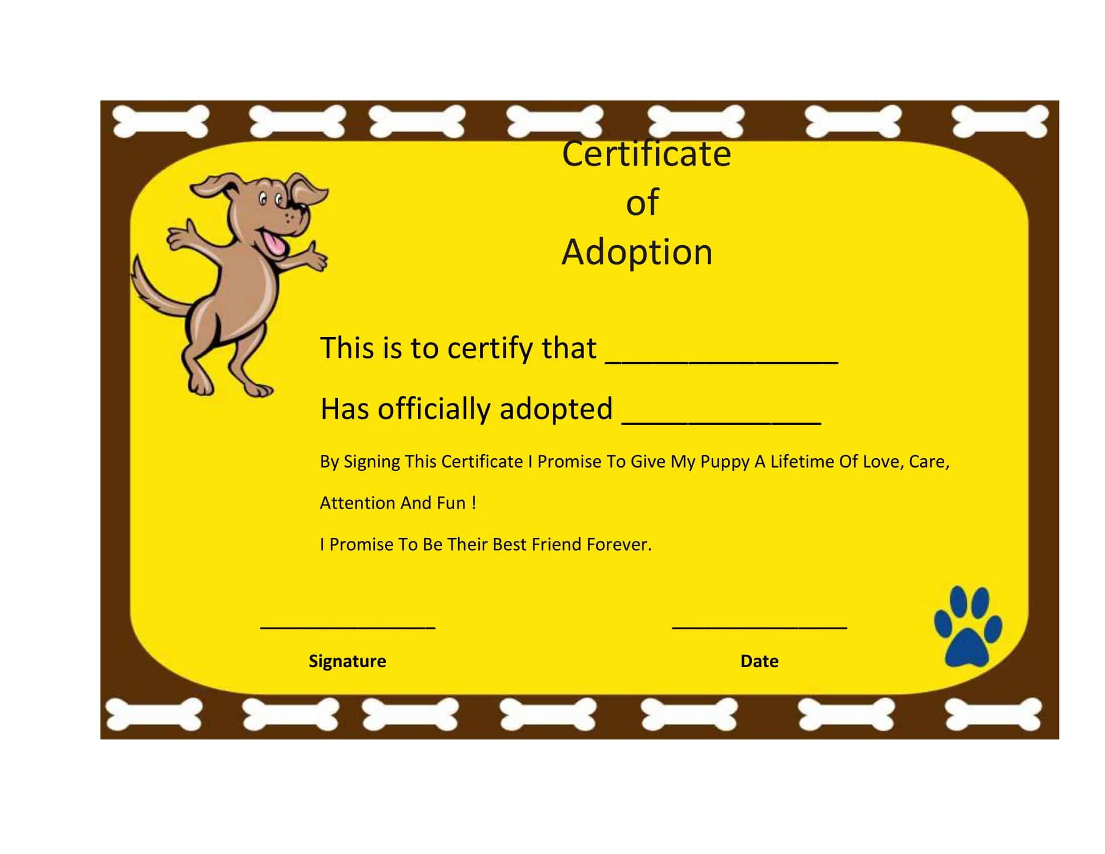 Editable pet adoption certificate printable certificate of adoption