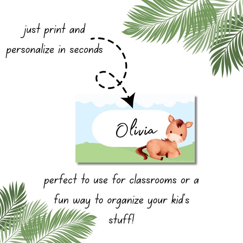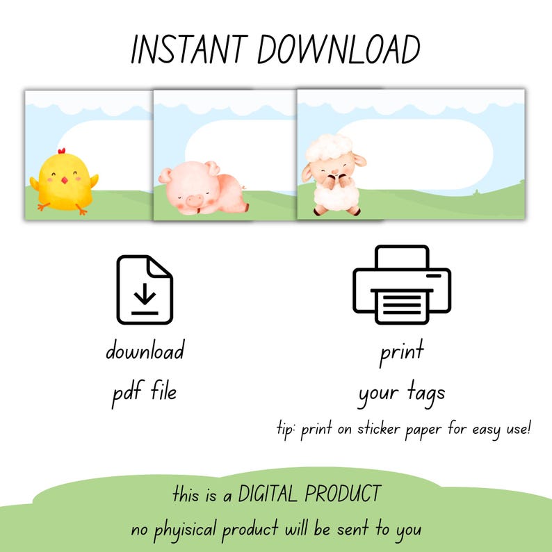 Farm Animal Name Tags: Printable Kids Labels for School Party (PDF) Etsy