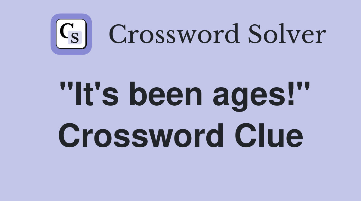 quot It #39 s been ages quot Crossword Clue Answers Crossword Solver