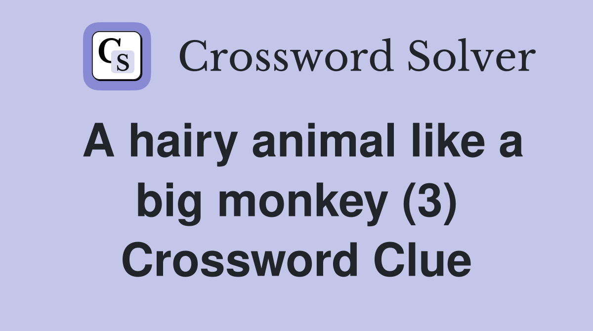 A hairy animal like a big monkey (3) Crossword Clue Answers