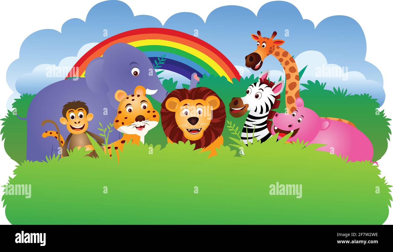 Animal Cartoon in the Jungle Stock Vector Illustration of smile
