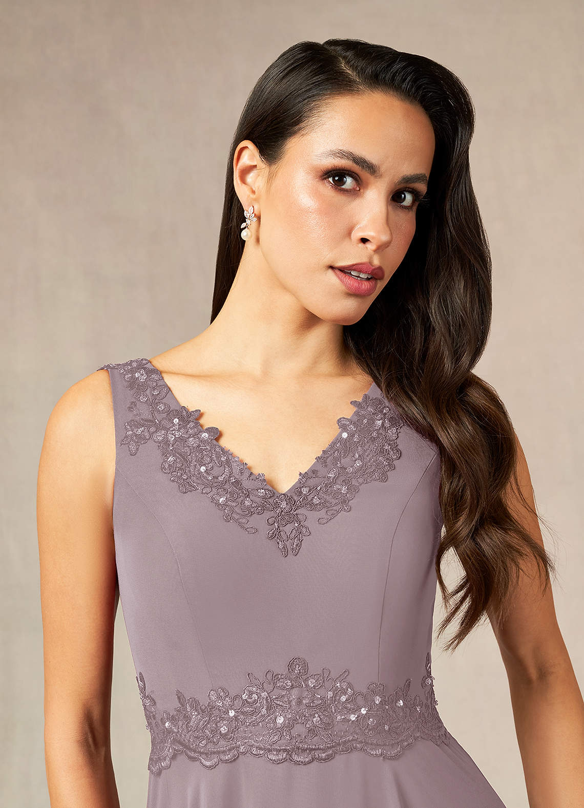 Dusk Azazie Devana A Line Sequins Chiffon Ankle Length Dress Azazie