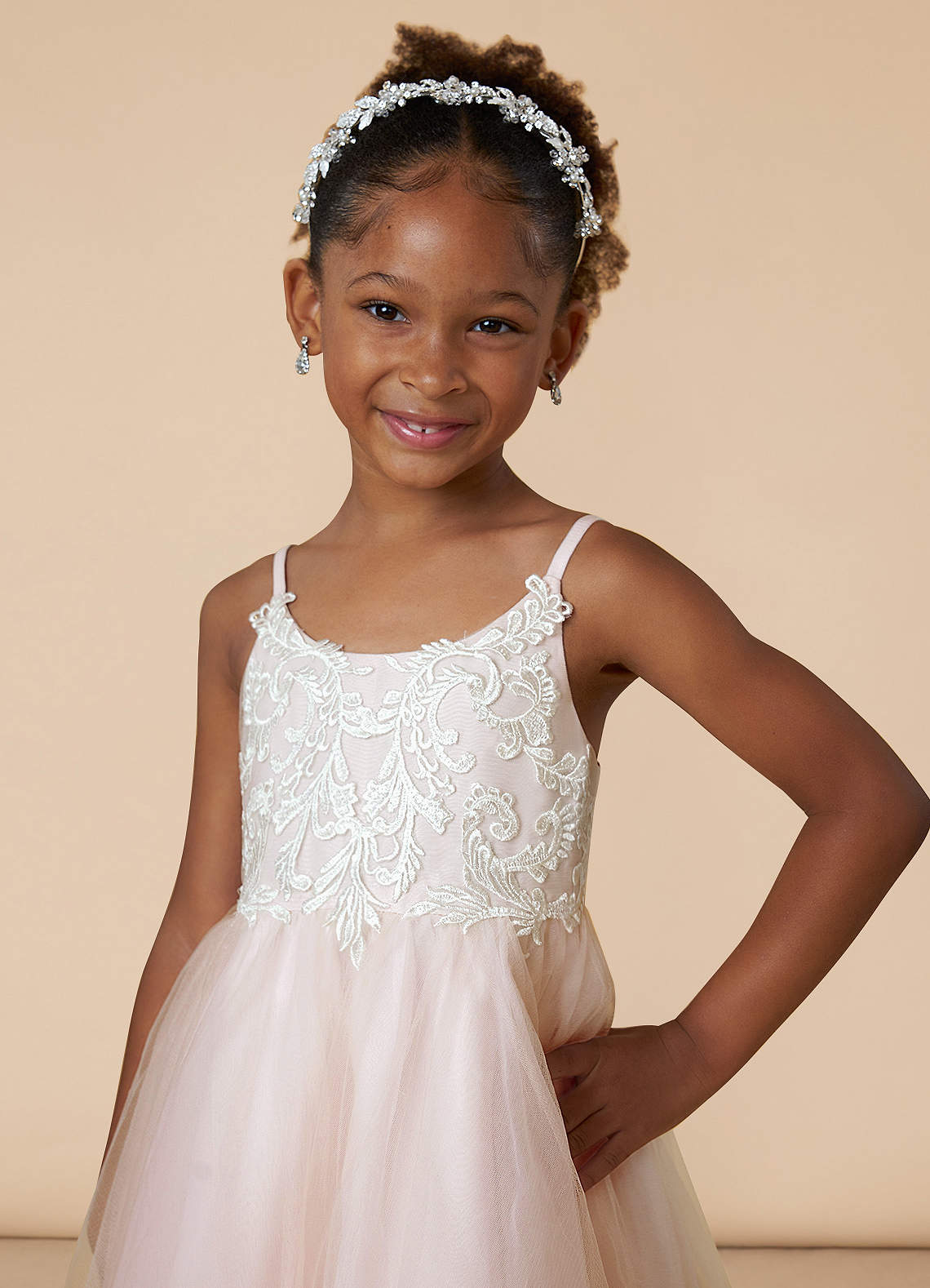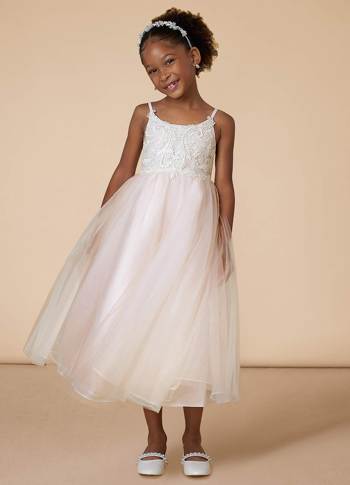 Ivory/Blushing Pink Azazie Buttercup A Line Lace Tulle Ankle Length