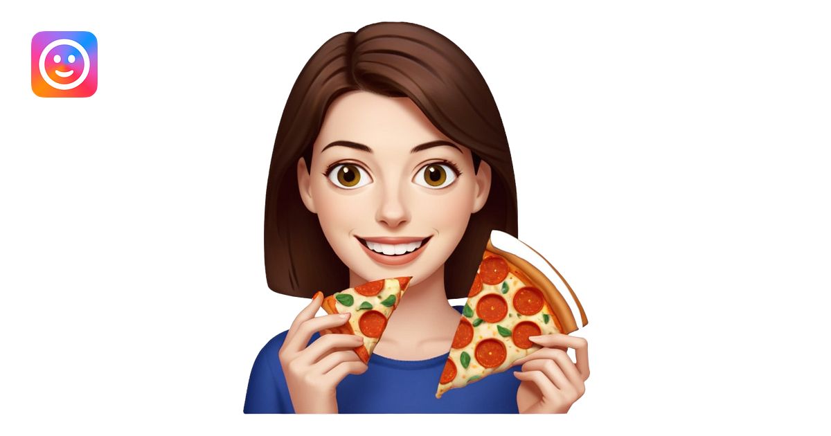Anne Hathaway with pizza emoji AI Emoji Generator