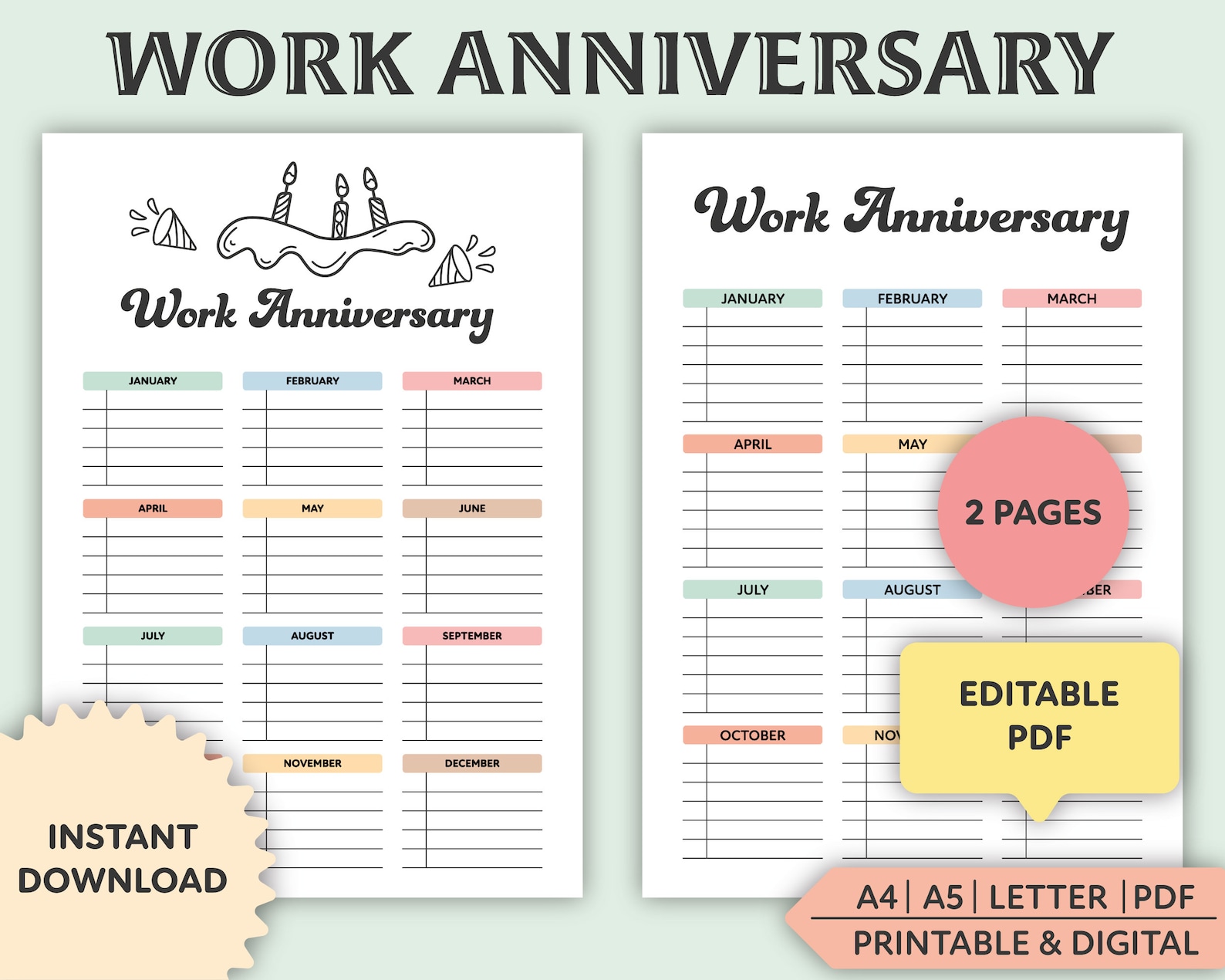 Editable Work Anniversary Tracker Printable Employee Chart Etsy