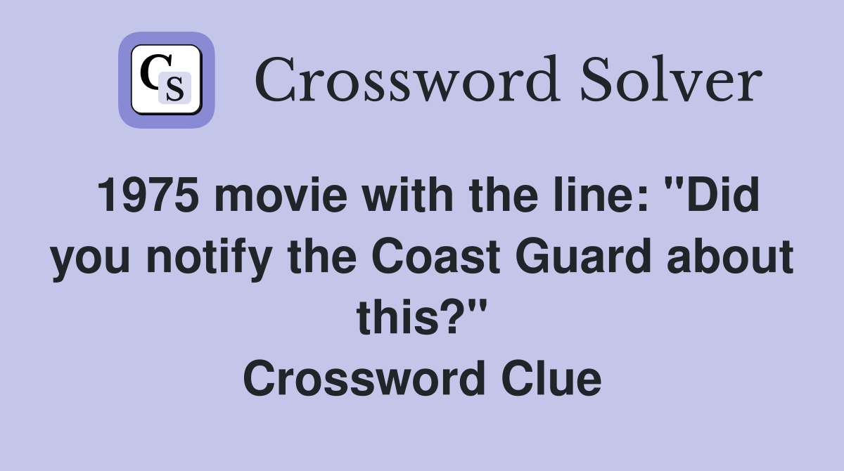 1975 movie with the line: quot Did you notify the Coast Guard about this