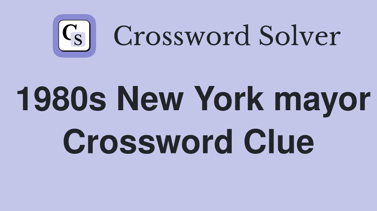 1980s New York mayor Crossword Clue Answers Crossword Solver