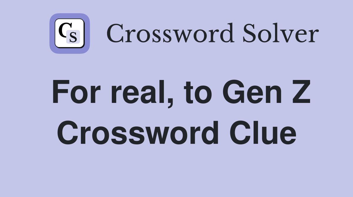 For real to Gen Z Crossword Clue Answers Crossword Solver