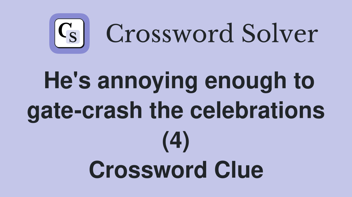 He #39 s annoying enough to gate crash the celebrations (4) Crossword