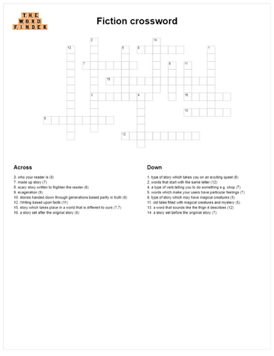 Fiction crossword Teaching Resources
