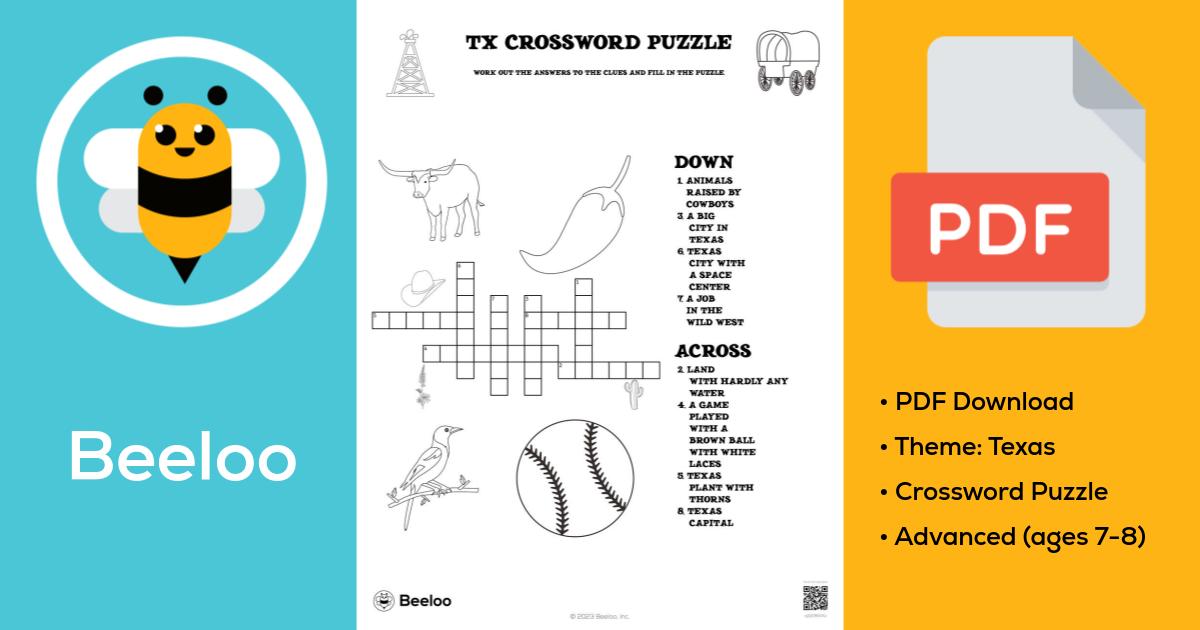 TX Crossword • Beeloo Printable Crafts and Activities for Kids