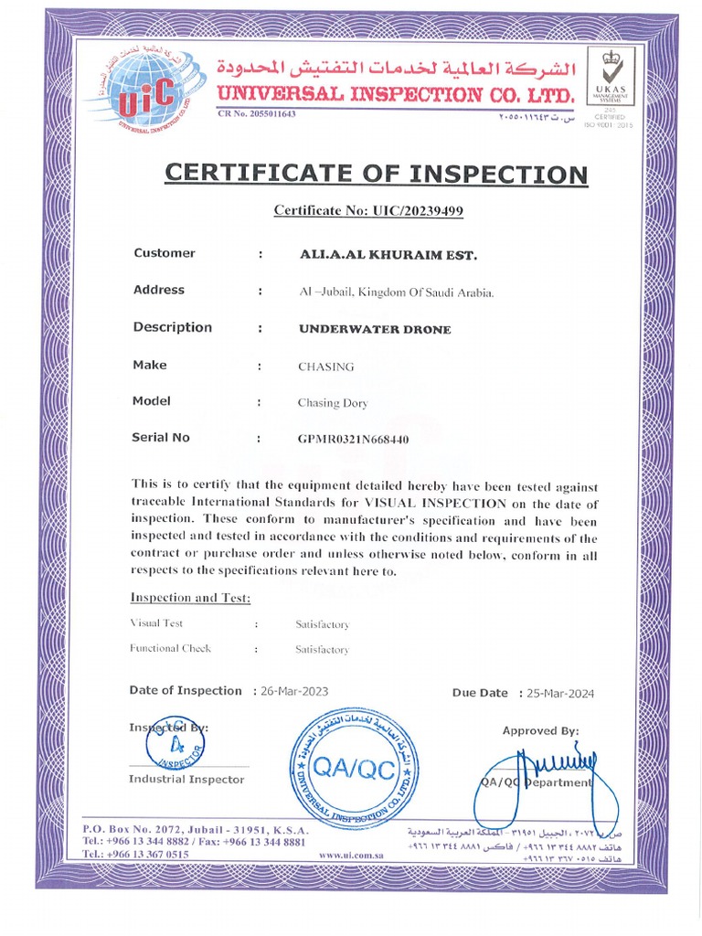 Inspection Certificate PDF