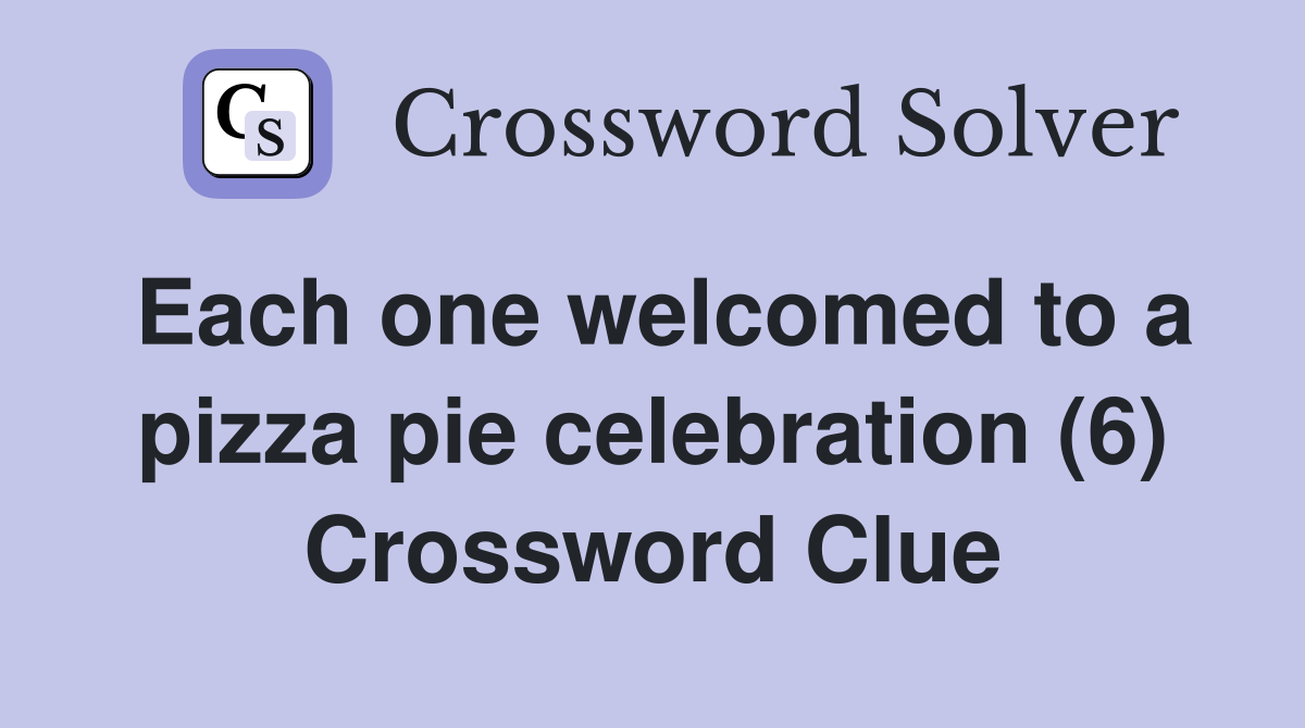 Each one welcomed to a pizza pie celebration (6) Crossword Clue