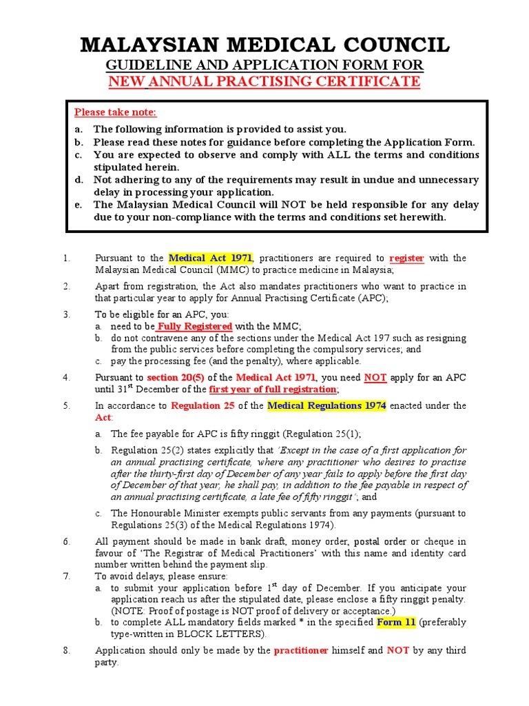 Fillable Online MALAYSIAN MEDICAL COUNCIL APPLICATION FOR ANNUAL