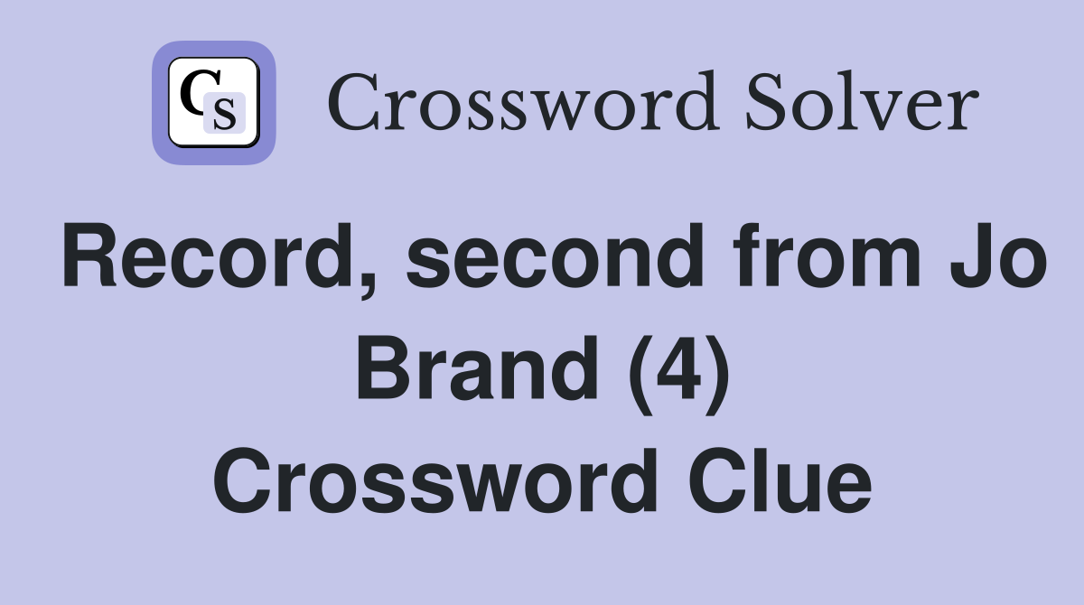 Record second from Jo Brand (4) Crossword Clue Answers Crossword