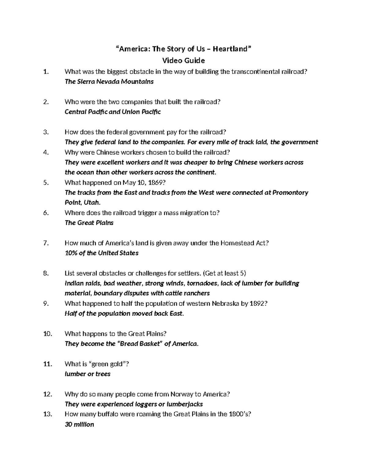 America: The Story of Us Heartland Video Guide Worksheets Library