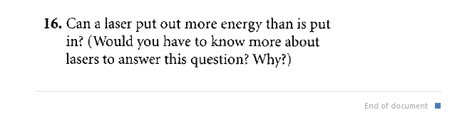 Solved 16 Can a laser put out more energy than is put in? Chegg com