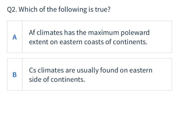 Solved Q2 Which of the following is true? A Af climates has Chegg com