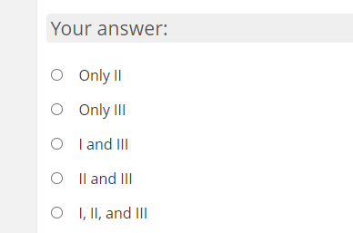 Solved Your answer: O Only 11 Only III O land III Oll and Chegg com