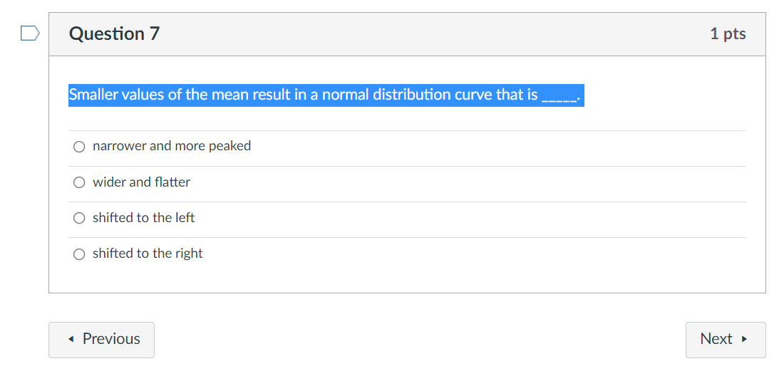 Solved Question 7 1 pts Smaller values of the mean result in Chegg com