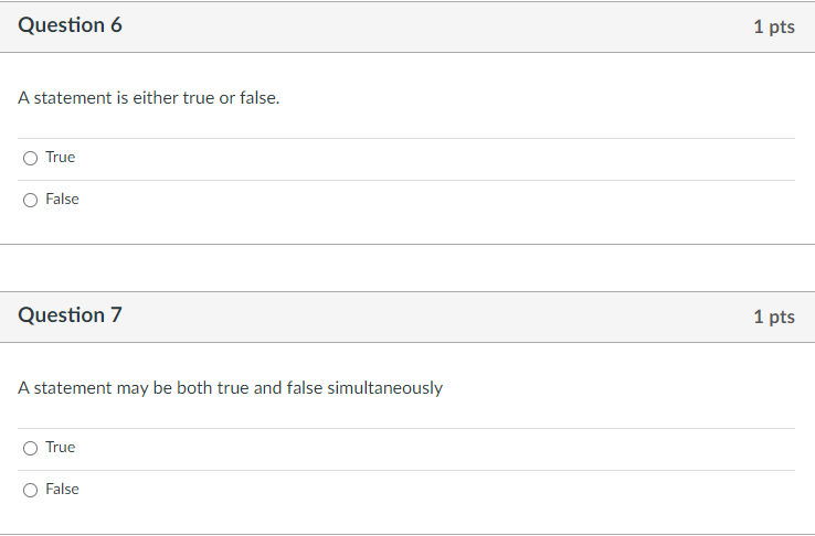 Solved Question 6 1 pts A statement is either true or false Chegg com