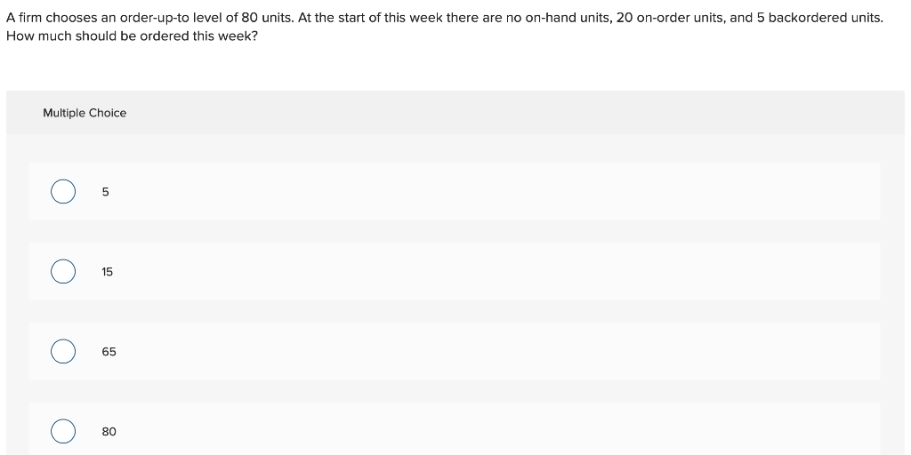 Solved A firm chooses an order up to level of 80 units At Chegg com