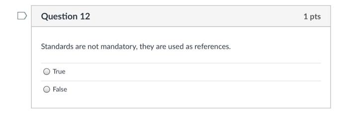 Solved Question 12 1 pts Standards are not mandatory they Chegg com