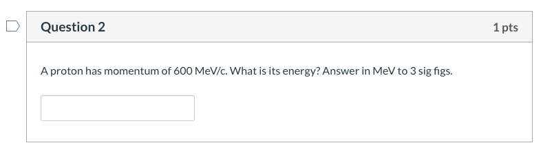 Solved Question 2 1 pts A proton has momentum of 600 MeV/c Chegg com
