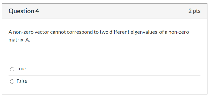 Solved Question 4 2 pts A non zero vector cannot correspond Chegg com