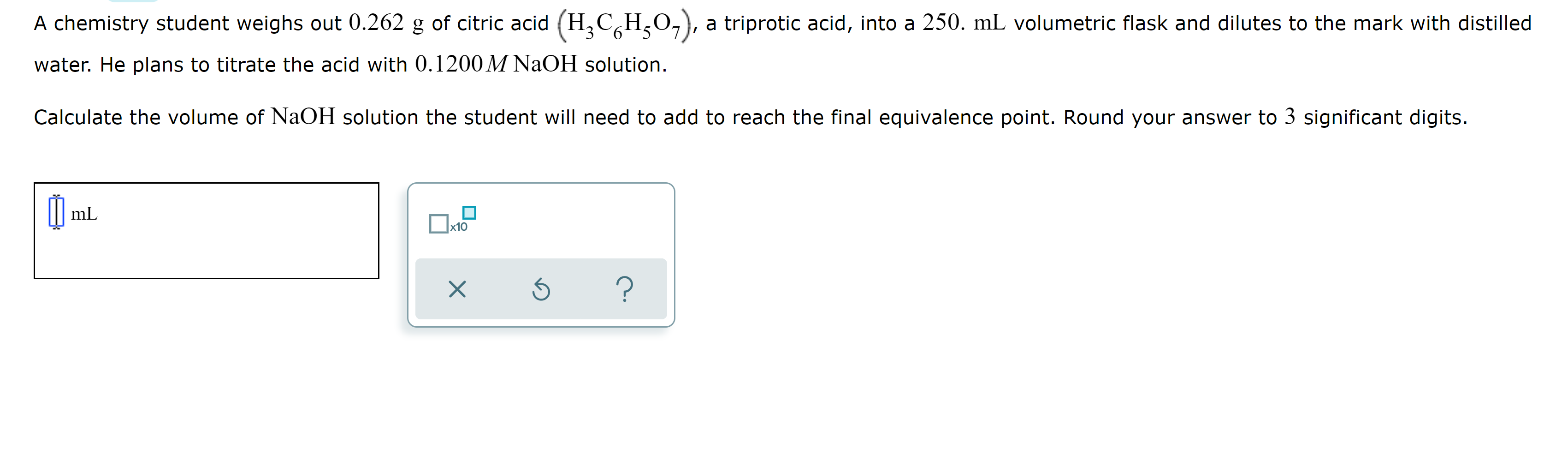 Solved A chemistry student weighs out 0 262 g of citric acid Chegg com
