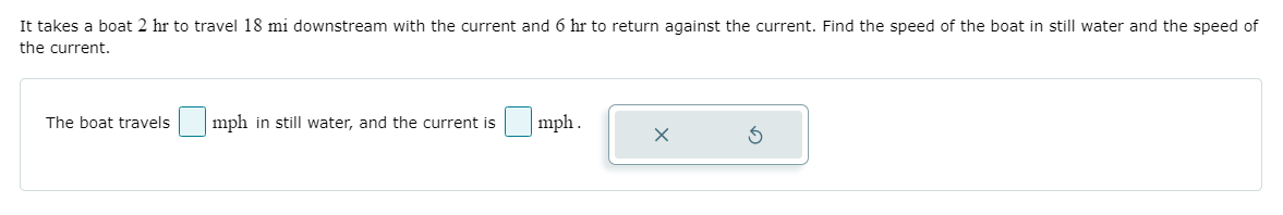 Solved It takes a boat 2 hr to travel 18 mi downstream with Chegg com
